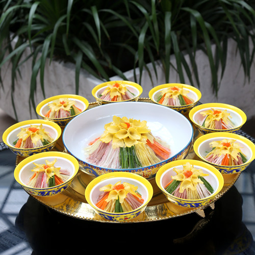 水席園旗艦店由一個(gè)可同時(shí)接待近400人就餐的大型宴會(huì)廳、一個(gè)可接納100人就餐的小型宴會(huì)廳和31個(gè)風(fēng)格各異的雅間組成,它既保留了水席園水席用湯講究、配頭精致的精髓,同時(shí)在突出水席園風(fēng)味特色的同時(shí),還推出粵、湘、川及私房菜等深受大眾喜愛(ài)的各色菜品,以及全聚德烤鴨、紅子雞、黃河大鯉魚(yú)等洛陽(yáng)餐旅集團(tuán)的幾十道貫標(biāo)菜,真正做到走進(jìn)一店,吃遍天下。