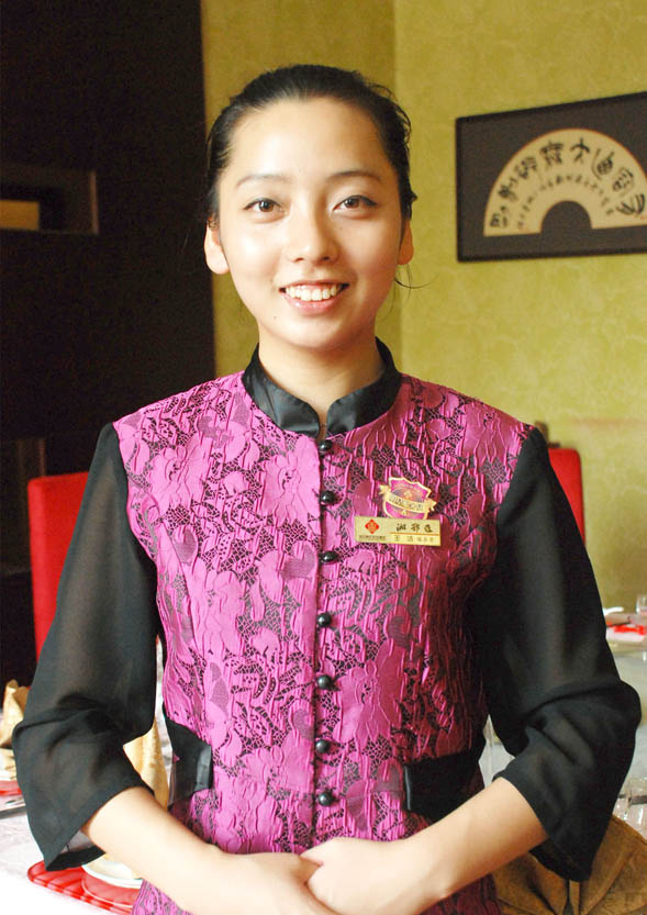 王潔,湘鄂匯大酒店二樓雅間***服務(wù)員,90后,精致的五官,嬌俏的身段,給人一種清新脫俗的感覺(jué)。2011年7月28日王潔入職宴天下大酒店新區(qū)店,同年10月調(diào)至湘鄂匯大酒店參加崗前培訓(xùn)。今年2月,湘鄂匯舉行了***批A、B級(jí)服務(wù)員考核,王潔被評(píng)為***服務(wù)員。