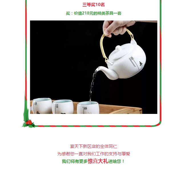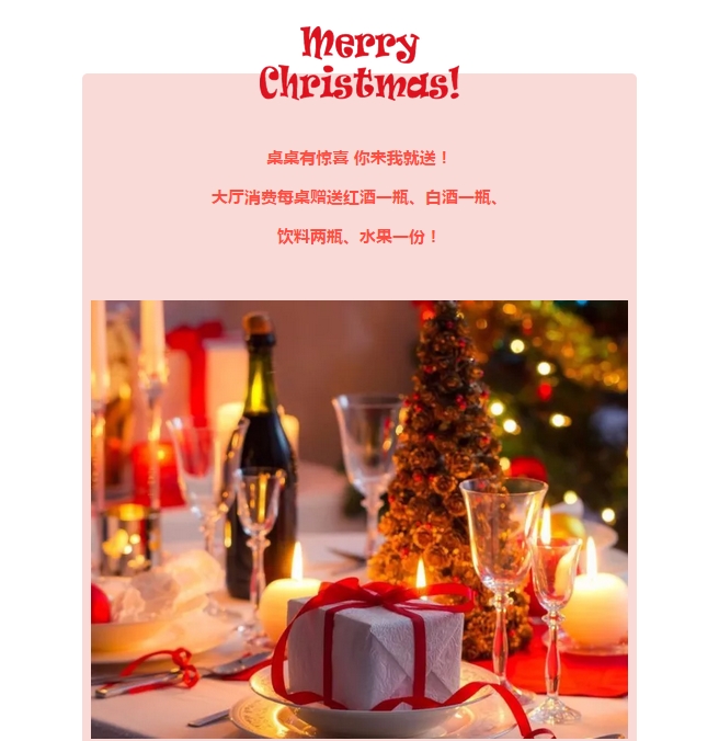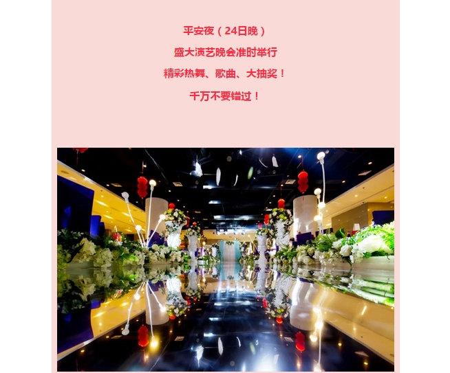 High翻平安夜 狂歡圣誕節(jié)丨盡在宴天下新區(qū)店 發(fā)布時間:2017-12-13來源:點擊:2479 洛陽餐旅 宴會專家全國預(yù)訂客服熱線:400-616-3939微信號:hacyly股票代碼:836977長按二維碼識別后添加關(guān)注以上信息來源于洛陽餐旅集團官網(wǎng):www.laoyingyan.net 分享到:0 用手機看 拍下二維碼,信息隨身看 試試用微信掃一掃,在你手機上繼續(xù)觀看此頁面。 上一篇:雙十二 | 如果你是吃外賣的洛陽人,必看! 下一篇:High翻平安夜 狂歡圣誕節(jié)丨盡在全聚德大酒店