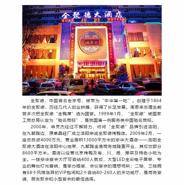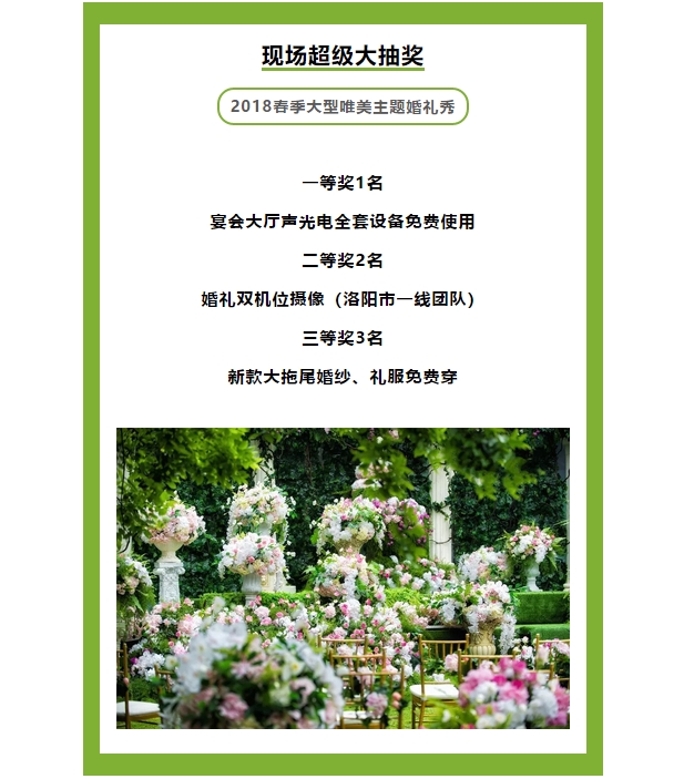 2018全聚德大酒店春季唯美主題婚禮秀 發(fā)布時間:2018-03-12來源:點擊:2996 洛陽餐旅 宴會專家全國預訂客服熱線:400-616-3939微信號:hacyly股票代碼:836977長按二維碼識別后添加關注以上信息來源于洛陽餐旅集團官網(wǎng):www.laoyingyan.net 分享到:0 用手機看 拍下二維碼,信息隨身看 試試用微信掃一掃,在你手機上繼續(xù)觀看此頁面。 上一篇:洛陽餐旅集團旗下各店2018年4月-7月可預訂宴會日期一覽表(3.12更新) 下一篇:洛陽餐旅第九期“一情二用心”活動總結表彰大會隆重舉行