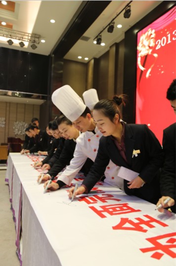 農(nóng)歷新年伊始,全聚德大酒店、紅子雞大酒店、宴天下大酒店新區(qū)店、湘鄂匯大酒店、宴天下大酒店老城店分別舉行員儀式,表示要為實(shí)現(xiàn)集團(tuán)和本公司2013年目標(biāo)而努力奮斗。