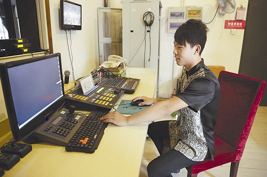 2011年冬天,未畢業(yè)的馬勇飛來到宴天下新區(qū)店,做了20天寒假工。回家過完年后,他再次來到宴天下新區(qū)店,成為宴天下大家庭的一份子。剛開始,馬勇飛在前廳做服務(wù)員,一次偶然的機(jī)會,他被調(diào)到了音響室。對于一個年輕人來說,音響室的一切都讓馬勇飛充滿了好奇,他學(xué)習(xí)起來非常用心,跟老師學(xué)習(xí)技巧,自己慢慢推敲琢磨,漸漸熟悉流程,一天天進(jìn)步起來。